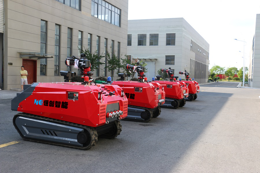 采用柴油發(fā)動機提供動力,采用ATV液壓履帶底盤,機動靈活,可原地轉(zhuǎn)向,可爬坡,越野能力強;配備的150L/s大流量進口消防炮,射程遠,可有效應(yīng)對大型火災(zāi)需求。消防機器人可有效的替代拖車炮、移動炮,利用自身動力將消防炮遙控至需要的位置,有效的替代消防救援人員靠近火源及危險場所進行偵察、滅火等作業(yè),操作人員可遠距離火源以外的地方進行滅火作戰(zhàn),避免不必要的傷亡。